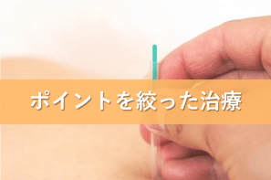 詳しく問診したあとで、体表観察(ツボのチェック)を行います。一番のポイントとなるツボを使って治療します。鍼の本数は1~3本程度で、痛みはほとんどありません。体に負担が少なく、かつ効果が大きいと好評です。